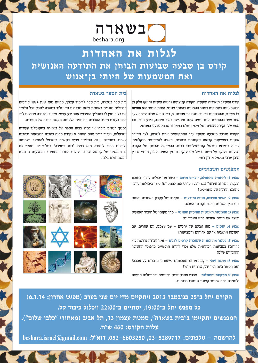 לפרטים נוספים ו/או להצטרפות לרשימת התפוצה של בשארה בישראל אנא צרו קשר עם ורד במייל beshara.israel@gmail.com או בטלפון 052-5940608