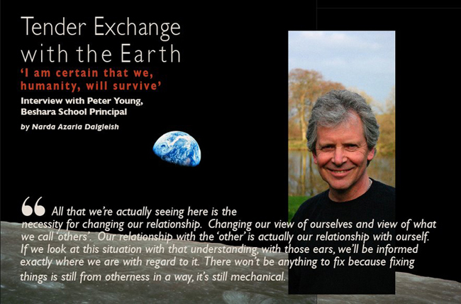 Peter Young studied anthropology at Cambridge mostly because he wanted to know what it means to be a human being. Yet when the question ‘does an idea have a reality?’ presented itself to him, it persisted because he could not find an answer to it through academic study. It was as though the question was beckoning a change in the direction of his education. In 1975 he attended the very first 6-month course at the Beshara School in the Scottish Borders and in 1984 he became its principal. But as Peter says, ‘the greater part of my life has been devoted to enquiring into another kind of knowledge which is not knowledge ‘about’, but is more like knowledge ‘from’.’ He necessarily considers himself, together with the school staff and those who attend the courses, a student. Insightful about the mysteries of the unity of being and the vastness of the human potential – which he always grounds within the current global state of affairs with surprising freshness – Peter has given many talks the world over and run short courses in the UK, Israel, Jakarta, The Netherlands, Australia and the U.S.A